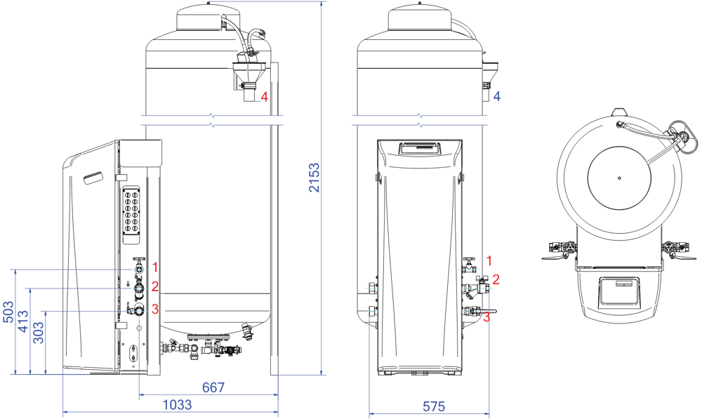 - Temperatura massima nel punto di connessione: 70°C (oltre 70°C possibile con serbatoio ausiliario)