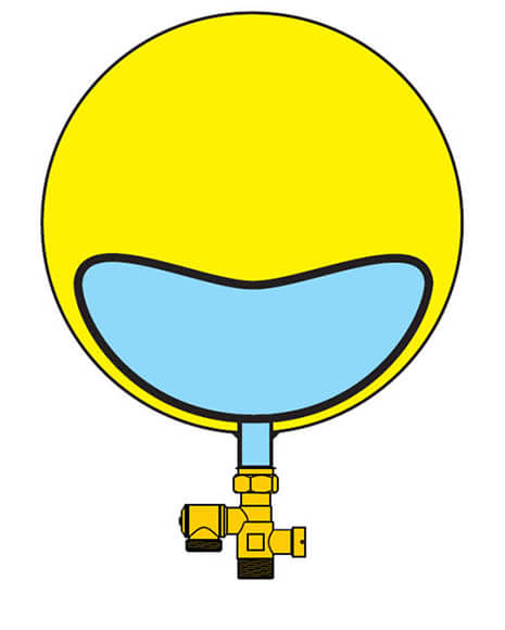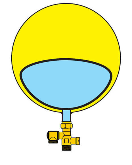 La membrana tascabile viene utilizzata per assorbire la variazione di volume dell'acqua del sistema quando viene riscaldata. La prepressione nella camera a gas del vaso di espansione spinge l'acqua del sistema all'interno dell'impianto durante il raffreddamento.